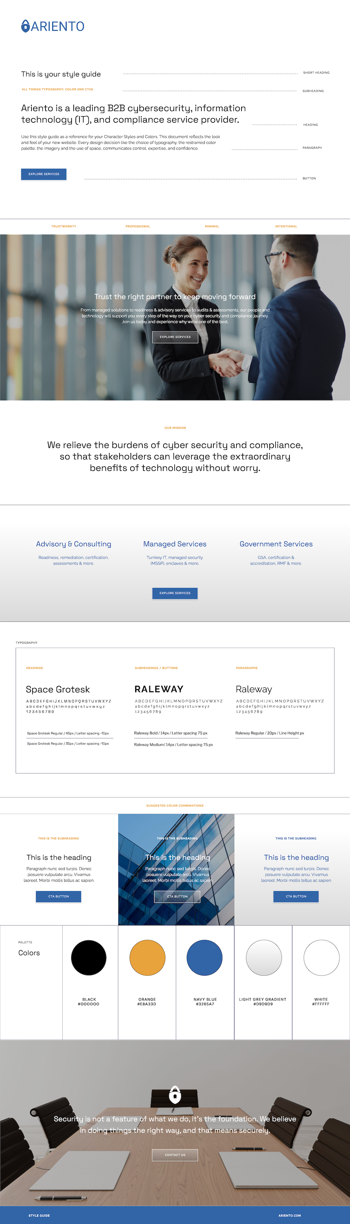 The redesign focused on clarifying a complex service offering, improving navigation across dozens of pages, and creating a more structured, conversion-driven user experience. We retained Ariento’s core brand elements while refining the visual system to align with the clean, high-trust aesthetic of industry leaders. The project included restructuring the site architecture, designing scalable service page templates, integrating review and lead-generation tools, and implementing foundational SEO improvements. The result is a more cohesive and flexible digital platform that supports growth, strengthens credibility, and positions Ariento competitively in a fast-moving, compliance-driven market.