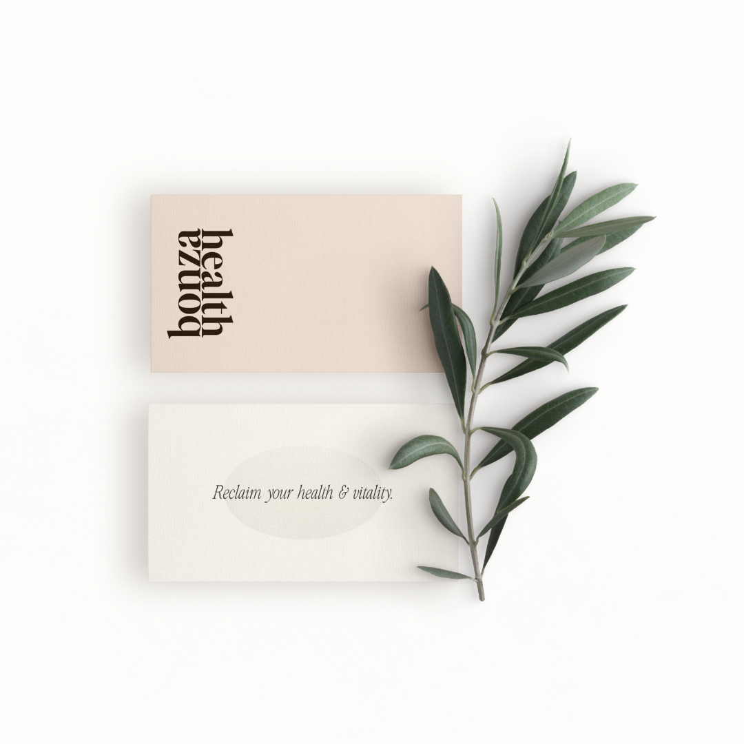 From there, we brought the brand to life online. The website was built with intention—minimal, intuitive, and grounded in calming earth tones like sage green and desert sand. It guides visitors through Bonza Health’s holistic services, wellness programs, and community offerings, with thoughtful UX designed to meet high-achieving women where they are in their personal health journeys.