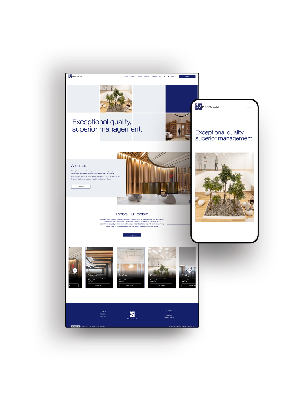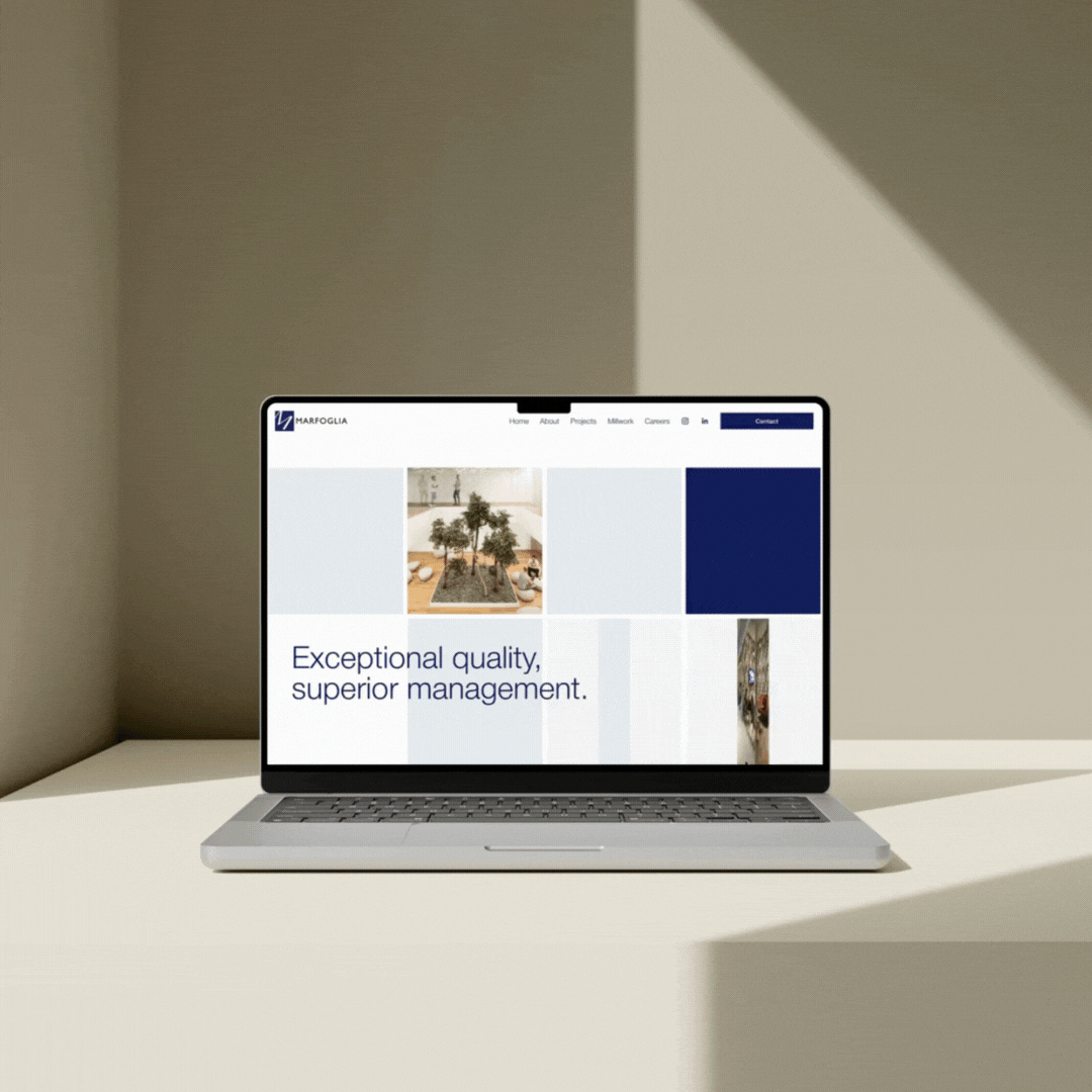 Marfoglia Construction, a family-owned general contracting firm based in Montreal, partnered with September Design Studio to elevate their digital presence through a refined and professional website redesign. The primary goal was to create a more modern, accessible, and bilingual site that reflects the quality of their work and the boutique nature of their services. The website was designed with a clean, contemporary layout and improved user experience—prioritizing readability, accessibility, and an understated yet confident aesthetic. We introduced interactive design elements such as hover-based image reveals, refined the color palette to complement their existing logo, and streamlined content to better resonate with their B2B clientele.