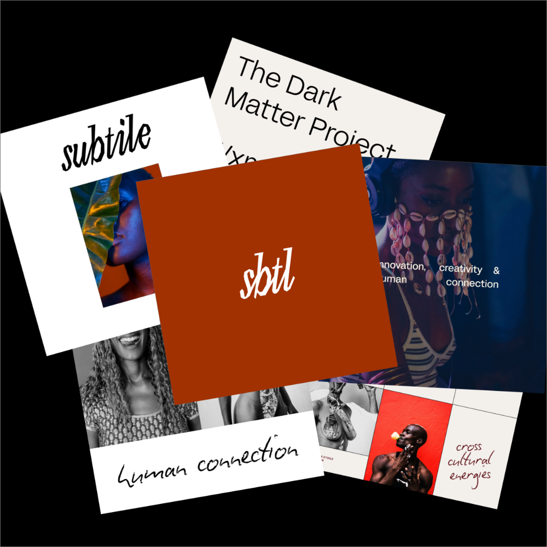 September Design Studio led the branding and website design, crafting a visual language that reflects Subtile’s core values of human connection, creativity, and innovation. The custom brand identity is rooted in an editorial aesthetic with a poetic, hand-crafted sensibility. We drew inspiration from experimental type design and Afro-diasporic influences to design Subtile’s branding.