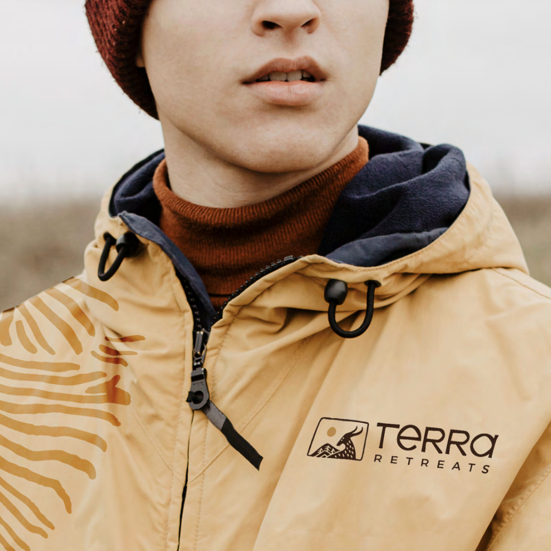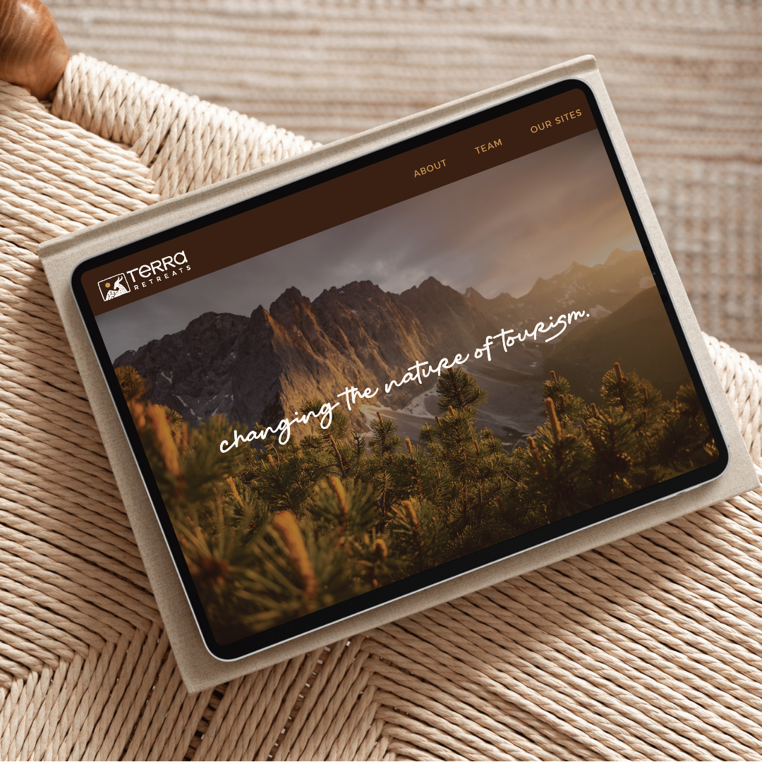 We began with a foundational brand strategy, aligning messaging with the emotional and environmental impact at the heart of the Terra experience. The resulting brand identity centered around a custom logo inspired by the mountain goat (chamois), symbolizing balance, adaptability, and harmony with nature. We paired this with a modern serif-sans font system, an earthy but refined color palette, and hand-drawn motifs that reflect Terra’s deep connection to the land.