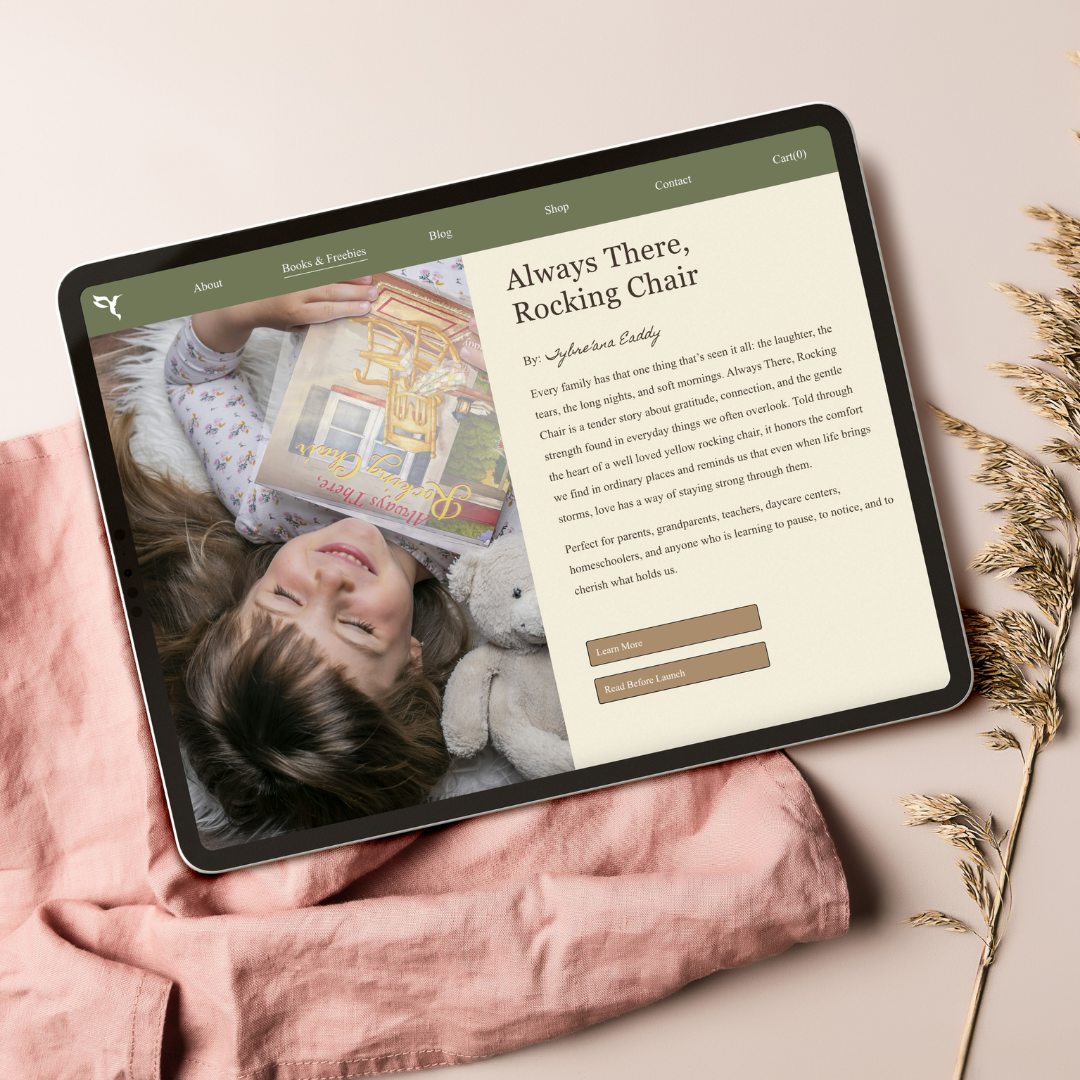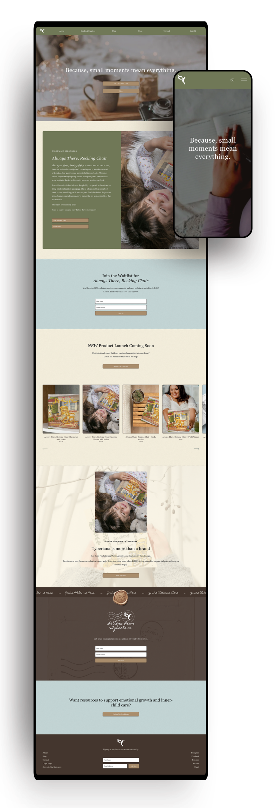 Tyberiana is a healing-centered personal brand founded by Tybre’ana Eaddy, rooted in lived experience, advocacy, and creative storytelling. With the upcoming release of her debut children’s book, Always There, Rocking Chair, Tyb needed a digital home that could hold both the emotional depth of her work and the growing ecosystem of books, resources, and community initiatives around it.