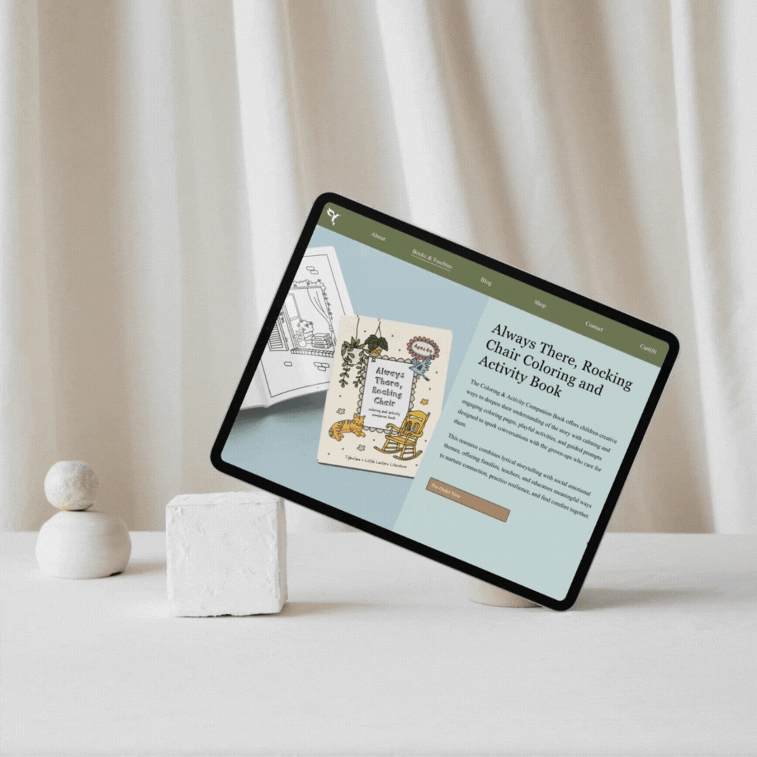 The website was designed to feel soft, grounding, and intentional, with a focus on accessibility, clarity, and emotional connection. We created a multi-page content system for her book, resources, and advocacy work, supported by a newsletter ecosystem designed to grow her audience ahead of the book launch.
